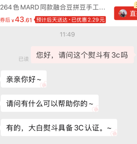记者询问拼豆商家送的熨斗是否有3C认证。