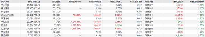 西部利得新动力重点布局了资源类股票,山金国际、赤峰黄金、湖南黄金等配置居前;广发远见智选则继续在存储板块布局,同时加入光通信资产,长飞光纤、中天科技、亨通光电等新进前十大重仓股;国寿安保数字经济则继续在光通信领域重仓布局,新进重仓了中天科技、烽火通信等个股。